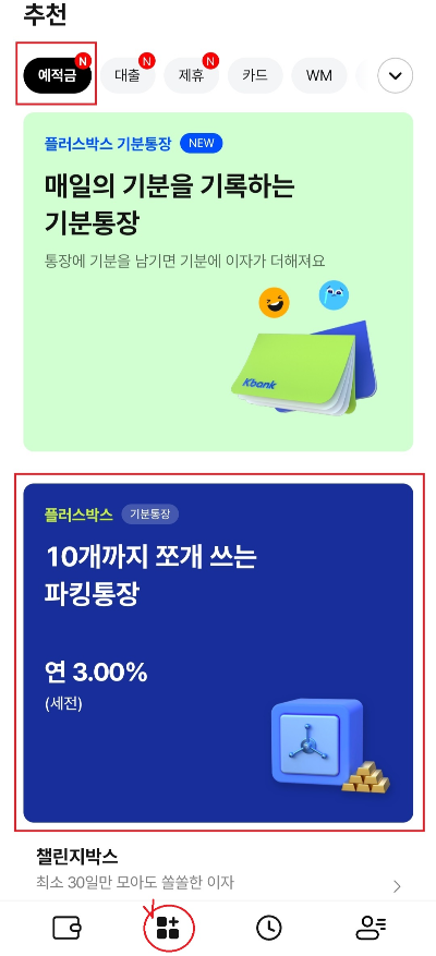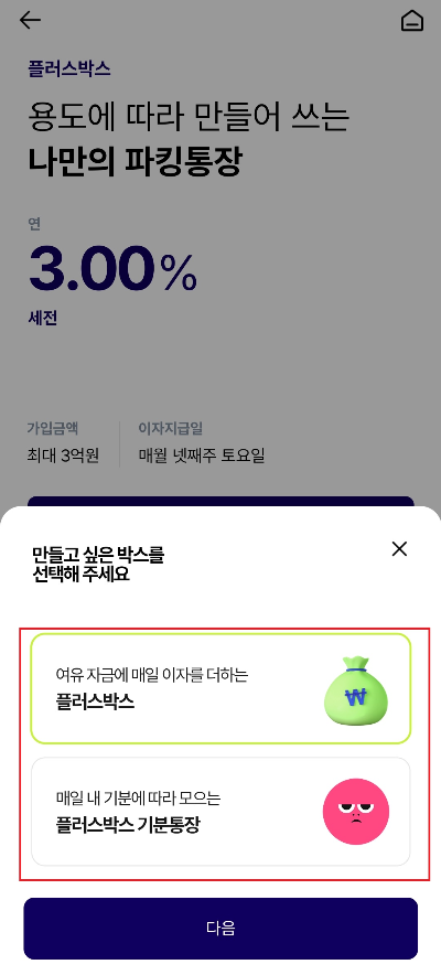4. 만들고 싶은 박스를 클릭합니다. 기본 파킹통장은 플러스박스입니다.