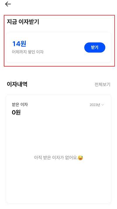 지금 이자 받기는 1원 이상 이자가 쌓이면 바로 받을 수 있다고 해요