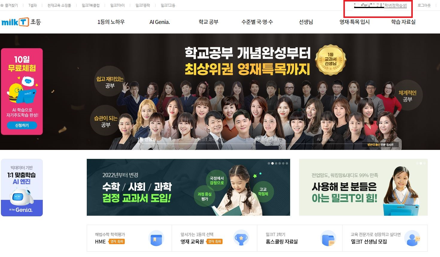 2. 로그인 버튼 있던 자리에 보이는 자녀 이름 [ OOO (정학습생) ]을 클릭합니다.