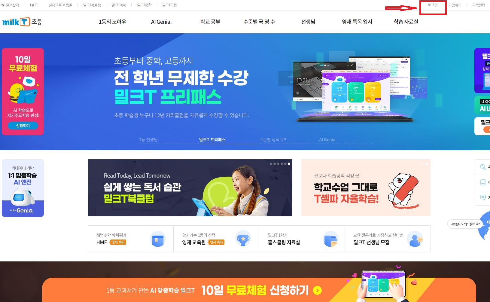 1. 홈페이지에 접속해서 로그인 합니다. (자녀의 아이디/비번을 넣으셔야 됩니다.)