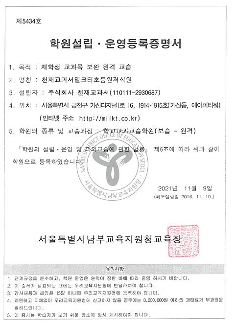빨간펜의 경우에도 따로 학원설립.운영등록번호가 없습니다.