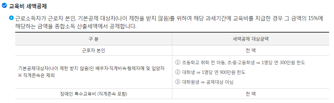 그럼 교육비 공제를 받을 수가 없겠네요.
