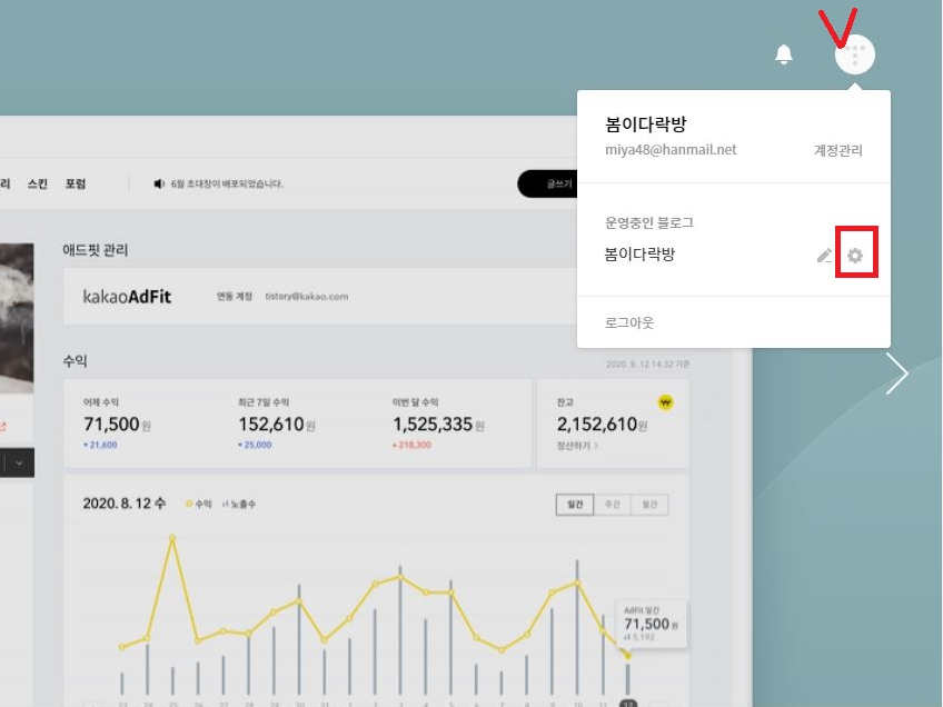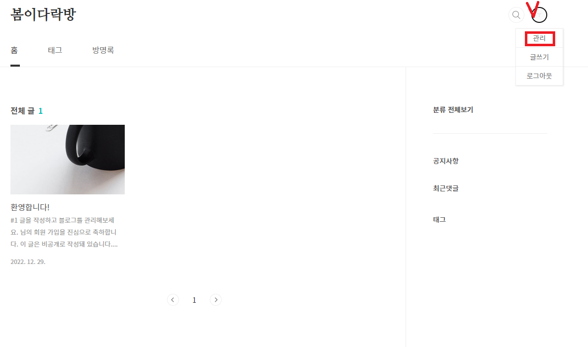 내블로그 홈 화면에서 설정관리 들어가기