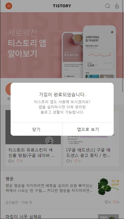 1. 티스토리 사이트 접속 후 회원가입 하기